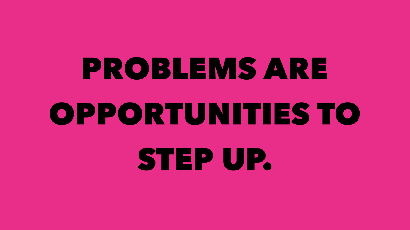 Problems are opportunities to step up. Problems are opportunities to practice being leaders.