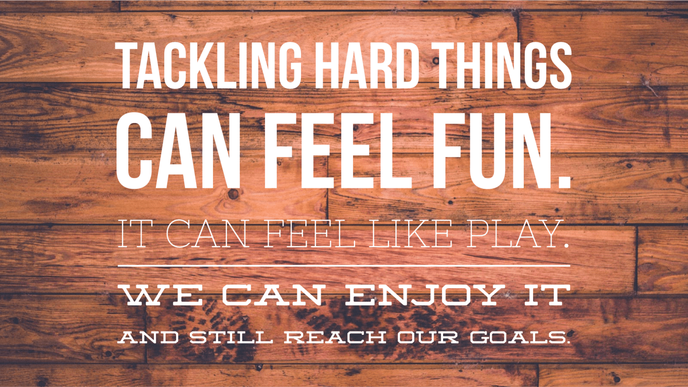 Tackling hard things can feel fun. It can feel like a play. We can enjoy it and still reach out goals. That’s not cheating. And that doesn’t mean it won’t be challenging. It just means we aren’t making things harder than they need to be.