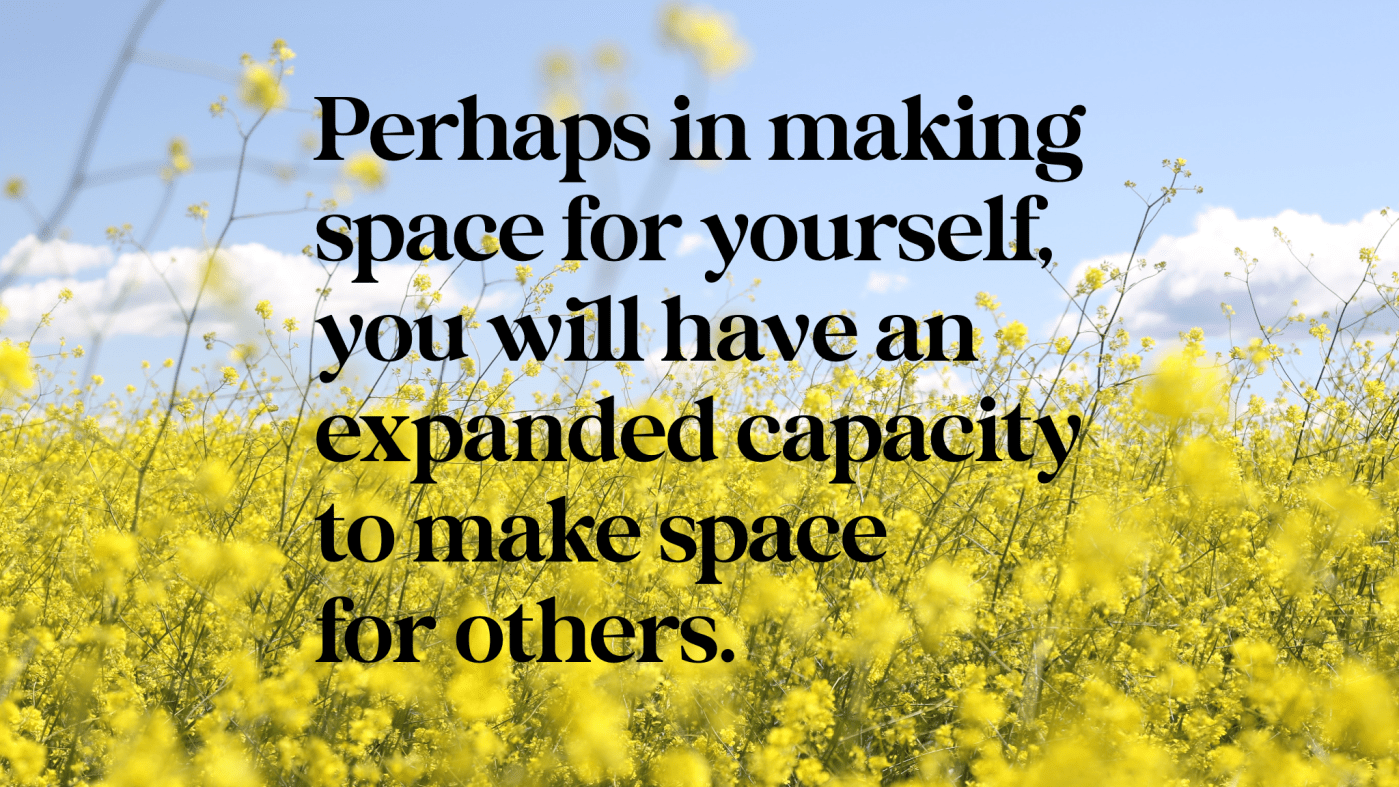 Perhaps in making space for yourself, you will have an expanded capacity to make space for others. Perhaps you will have an expanded capacity to be a bit more human with others too.