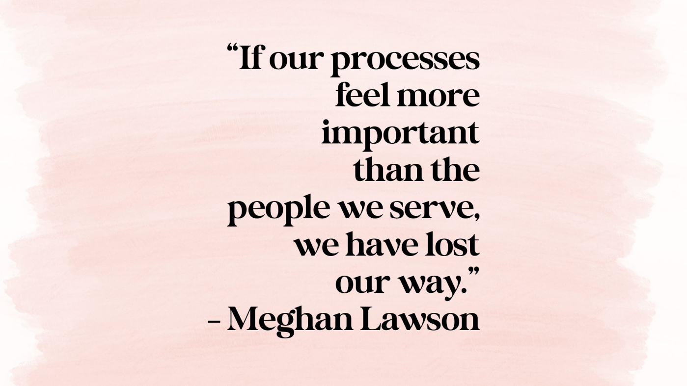 People before process. If our processes feel more important than the people we serve, we have lost our way.
