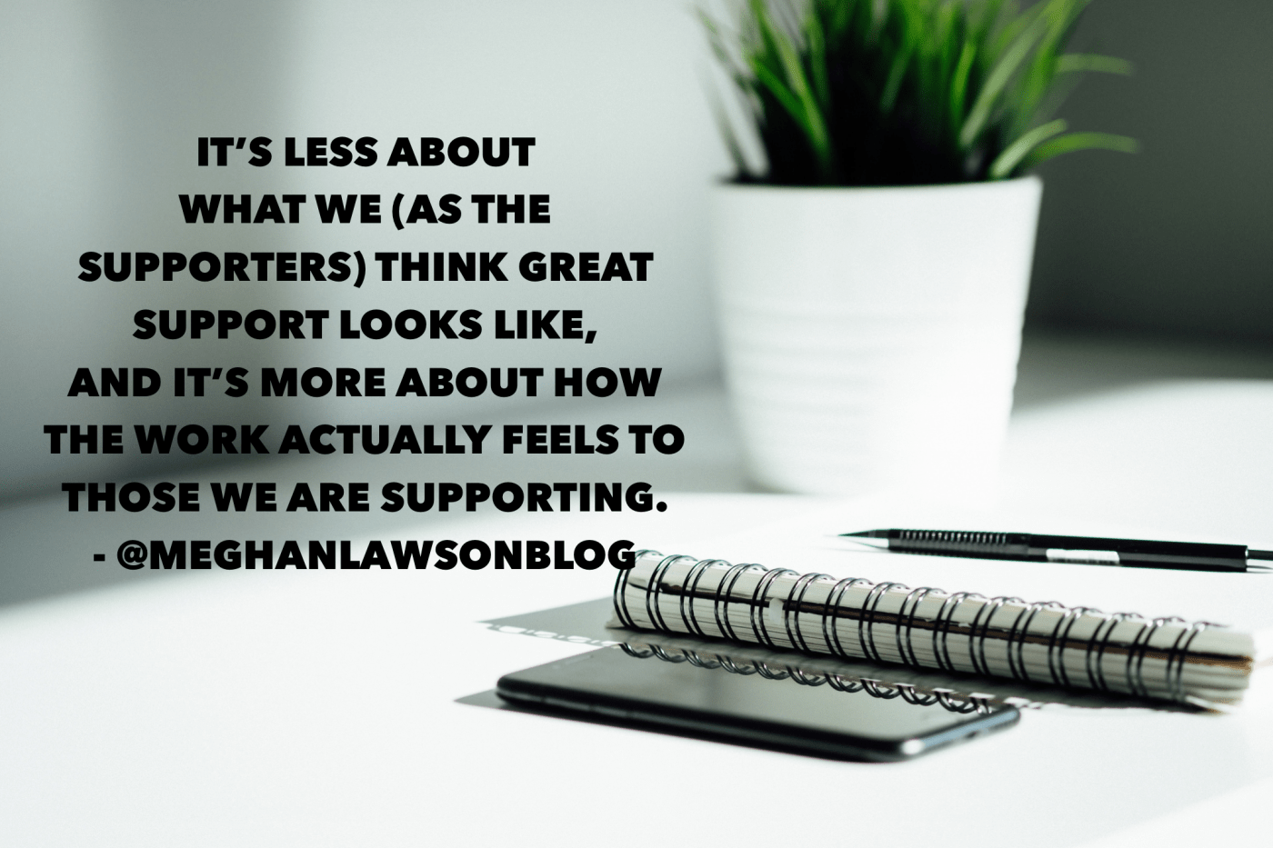 I also hope to use the feedback that I’ve received to support others in the ways they want to be supported. It’s less about what we (as the supporters) think great support looks like, and it’s more about how the work actually feels to those we are supporting.