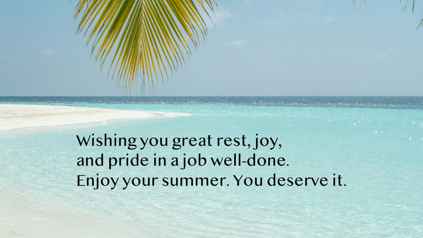 Wishing you great rest, joy, and pride in job well-done. Enjoy your summer. You deserve it.