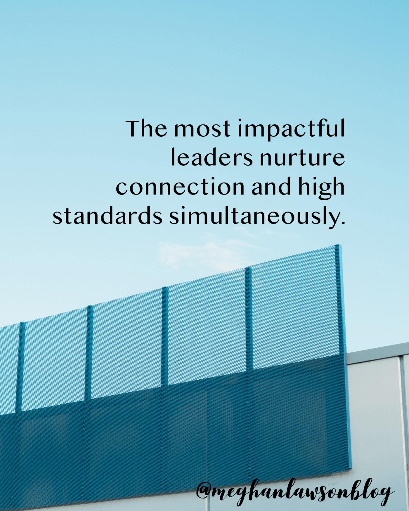 He goes on to explain that if a leader has high expectations but low levels of connection, this leads to rebellion and resentment. When a leader has high levels of connection but low standards, this leads to entitlement. So, the most impactful leaders nurture connection and high standards simultaneously.