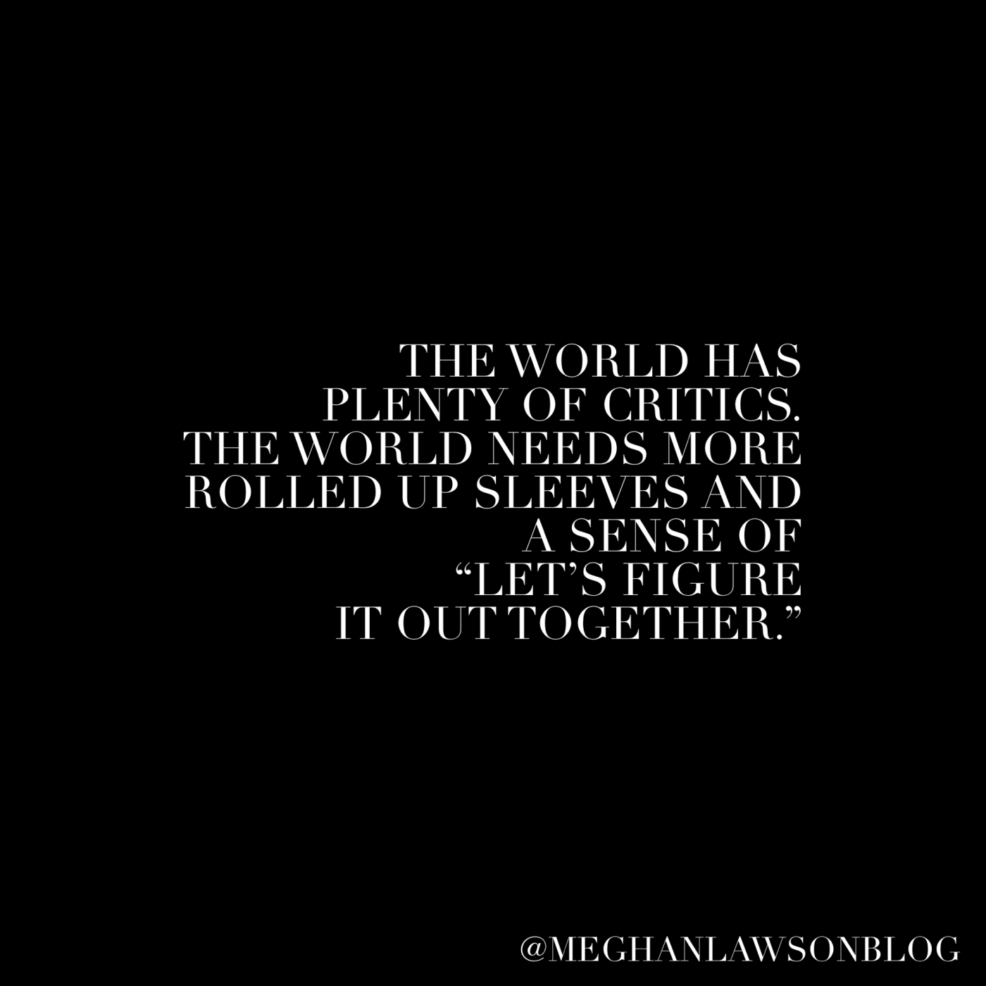 Before you offer that feedback, send that email, make that little comment, ask yourself if it’s helpful and productive. Most of us doing the best we know how to do, and we are often our worst critics. The world has plenty of critics already. What we seem to lack is rolled up sleeves and a sense of “Let’s figure it out together.” What we seem to lack is genuine curiosity, an interest in “How might we…” and a can-do spirit of togetherness.