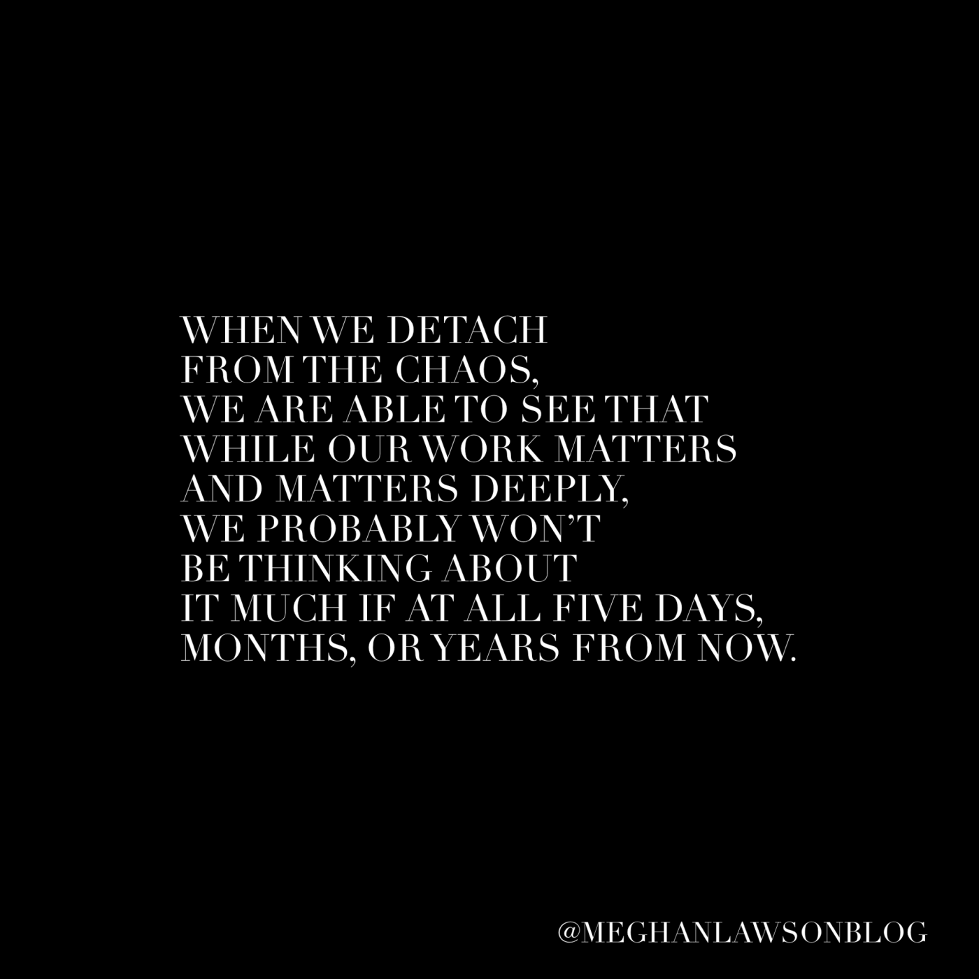 That’s the beauty of space. It can be perspective-giving. When we detach from the chaos, we are able to see that while our work matters and matters deeply, we probably won’t be thinking about it much if at all five days, months, or years from now.