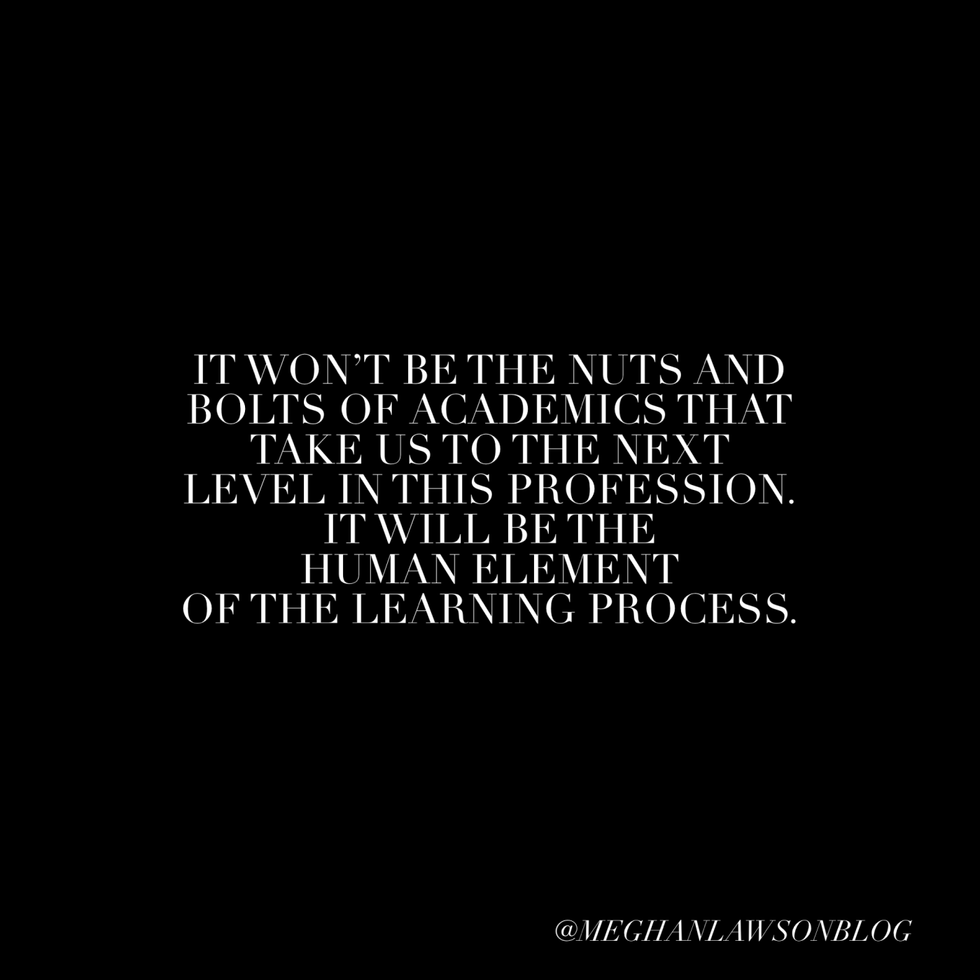 It won’t be the nuts and bolts of academics that take us to the next level in this profession. It will be the human element of the learning process.