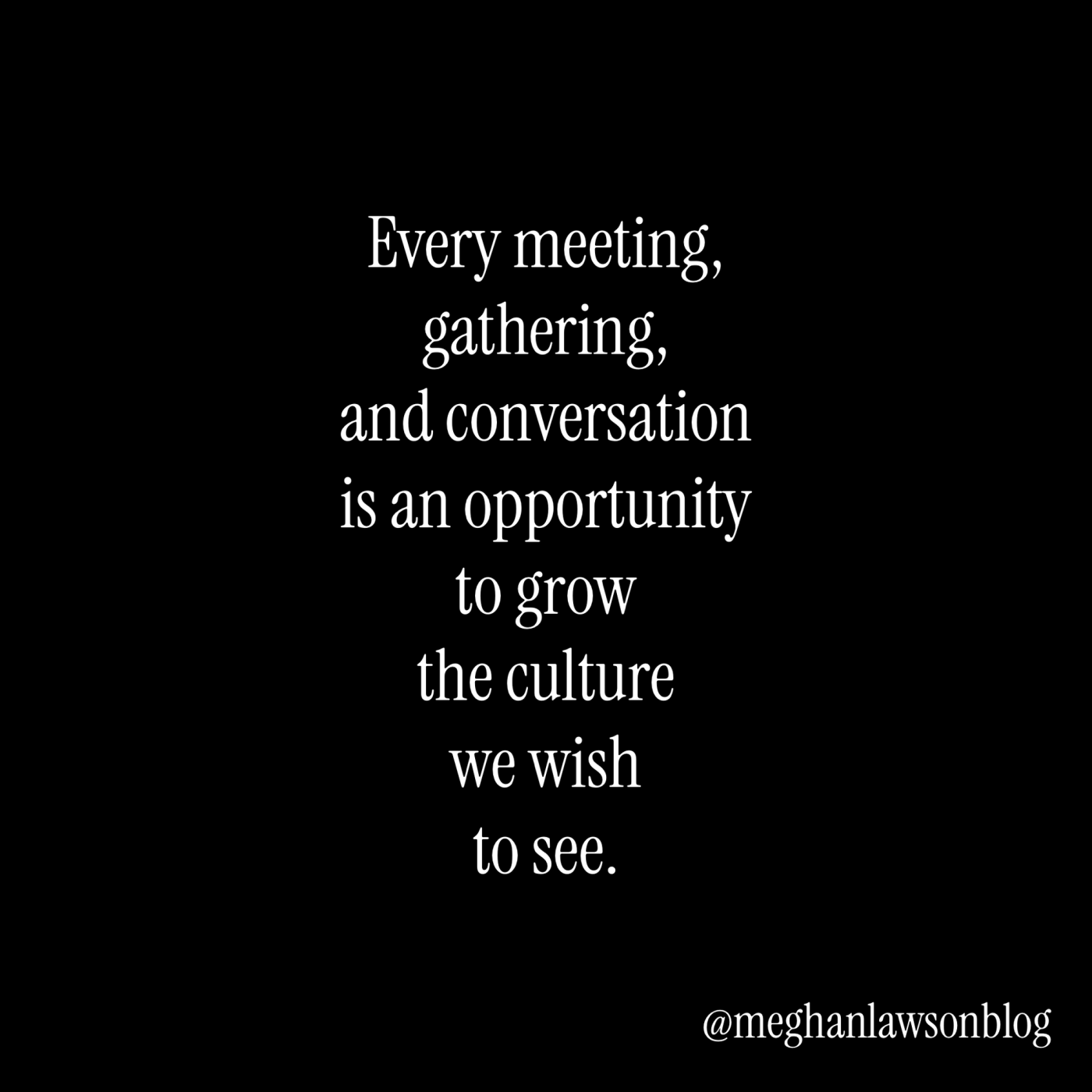 Every meeting, gathering, and conversation is an opportunity to grow the culture we wish to see. Let’s truly see people and become curious about them, their stories, insights, and gifts. Let’s allow ourselves to notice what is said, how it is said, and what is not being said and in the spirit of possibilities, care, and mattering, allow ourselves to ask people to tell us more.