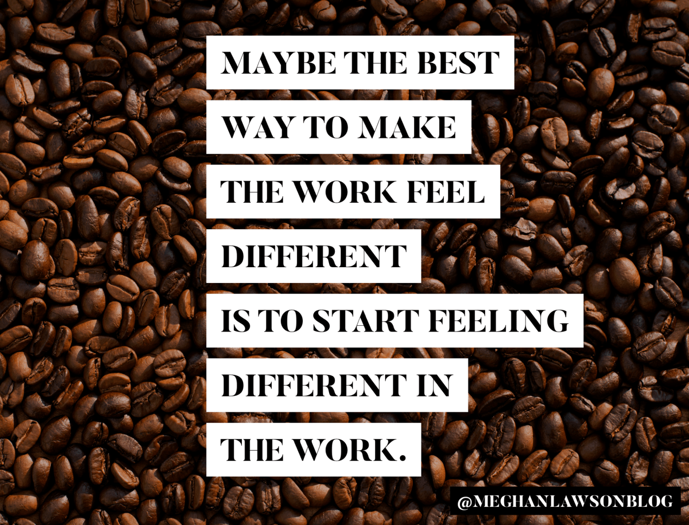 Maybe the best way to make the work feel different is to start feeling different in the work. It’s an inside job. That’s a hard truth but an empowering one if we decide to see it that way.