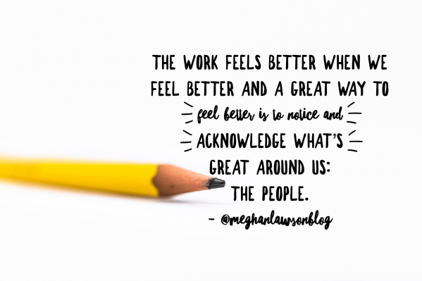 Recently, a teacher sent me a very kind text message. It didn't feel like I deserved her words of affirmation, but I cherished them and held them dear. It felt nice to have someone see something good in me, and it made me want to live up to those words the next day and every day. I guess all I'm saying is that our winters are long. The middle part of the school year can feel long and messy. But the work feels better when we feel better and a great way to feel better is to notice and acknowledge what's great around us: the people. The people make our schools special. Let's hype them up.