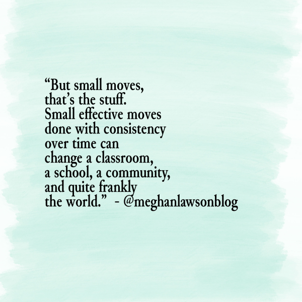 If someone makes a small move that has an impact on you, tell them. If you see someone make a small move that has a positive impact on another person, tell them. Tell them with specificity and joy in your heart. That encouragement may be just what they need to keep making those small moves tomorrow. Too often, our small beautiful moves get swallowed up by loud problems. When you look at all of our work at one time, it's overwhelming and easy to see problems everywhere. When you train your mind to celebrate small moments, you see possibility. You find hope. It's not that we ignore our problems. We work on them, but we don't mentally live there.