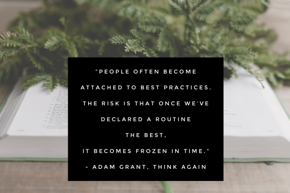 My hope for all of us is that we are brave enough to ask big questions of ourselves and the world. As Adam Grant says, "We laugh at people who still use Windows 95, yet we still cling to the opinions we formed in 1995." Writing is a great strategy for growing our thinking and humanity.