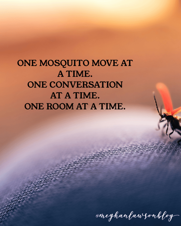 It's going to work out. It almost always does. So, let's love ourselves and each other through the process of growing and evolving. One mosquito move at a time. One conversation at a time. One room at a time.
